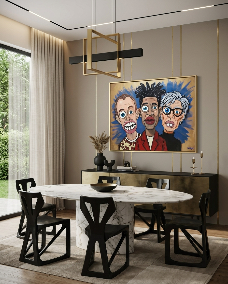 The title 1985 represents a defining moment in art history. It was during this period that Basquiat and Haring were rapidly rising, reshaping the art world with raw, street-driven energy, while Warhol stood as an already established icon who had transformed the relationship between art, fame, and consumer culture. This 1985 Basquiat Warhol Haring painting captures that exact intersection—where influence, momentum, and legacy all existed at the same time.