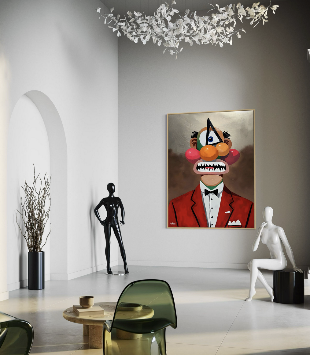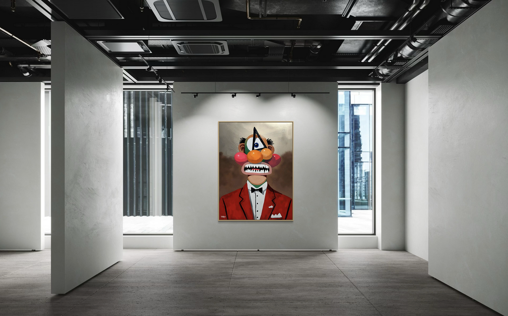 It’s part of his Funhouse series, and this one feels like it’s guiding you down the hallway where the mirrors twist your reflection, but somehow the distorted version of you feels more honest than the original.