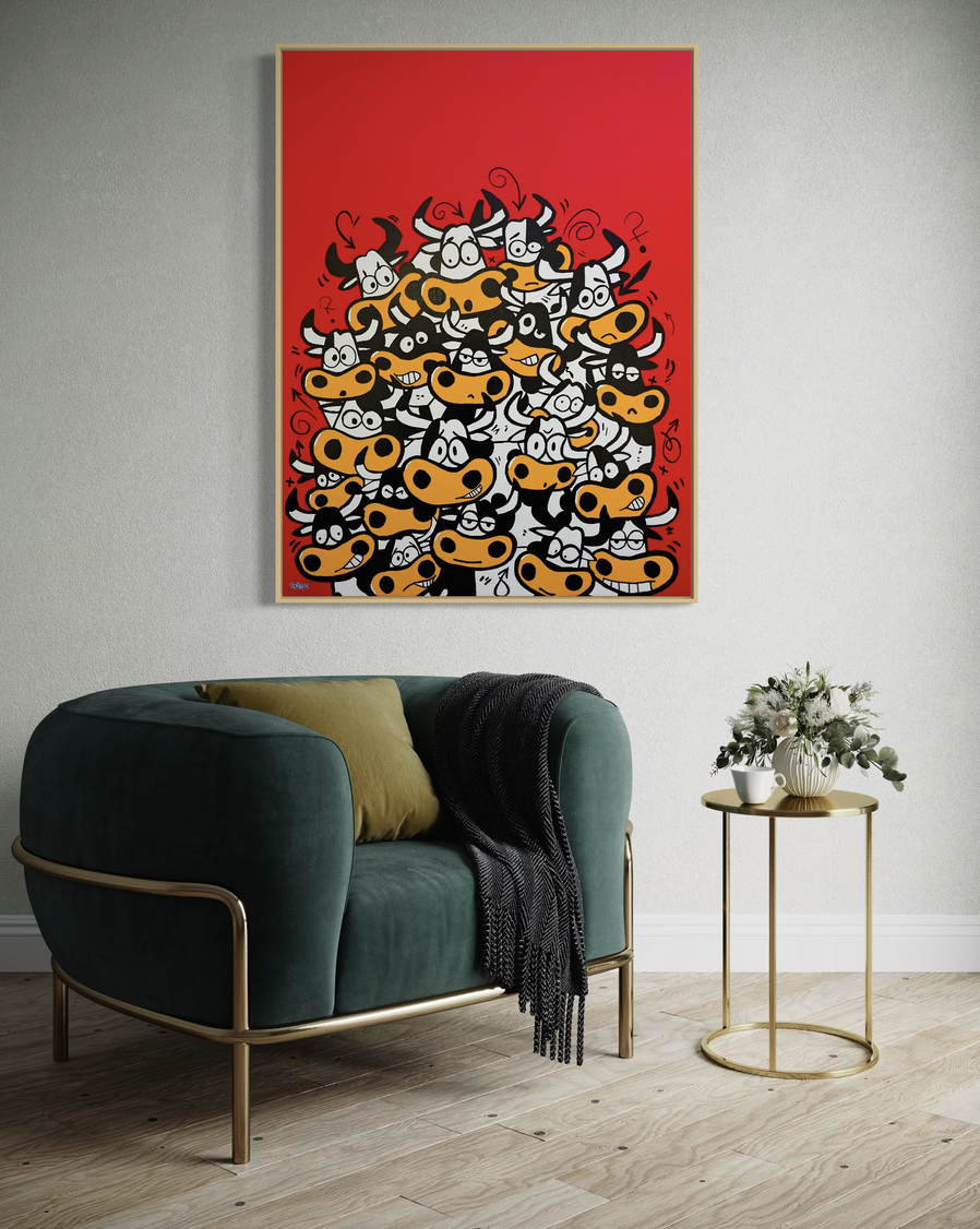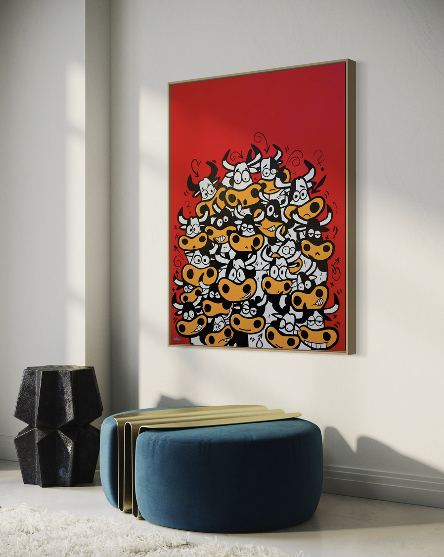 Together, they turn the canvas into a stampede between street art and expressionism.